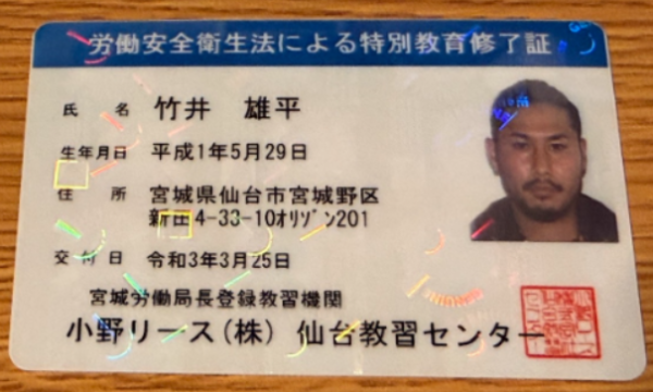 - 労働安全衛生法による安全衛生教育修了証(刈払機取扱作業者)