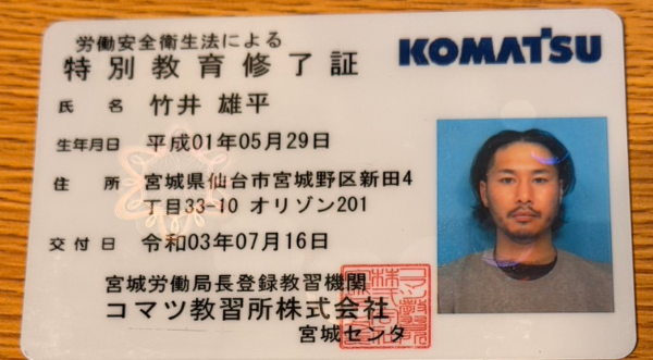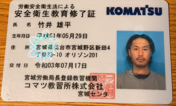 - 登録教習機関: コマツ教習所株式会社 宮城センター 他